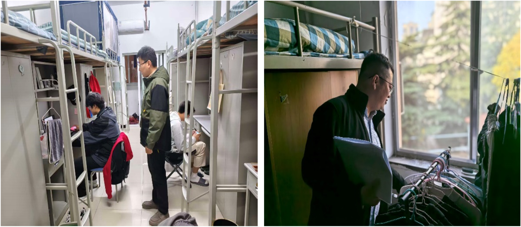 此次重点排查了宿舍内是否存在违规电器、私拉乱接电线、存放易燃易爆物品等安全隐患。通过真实安全事故案例,向学生生动阐述了“安全无小事”的深刻道理,强调了遵守宿舍管理规定的重要性。针对人走断电、插座安全使用、消防通道畅通等细节问题,也进行了逐一提醒,确保安全意识入脑入心。