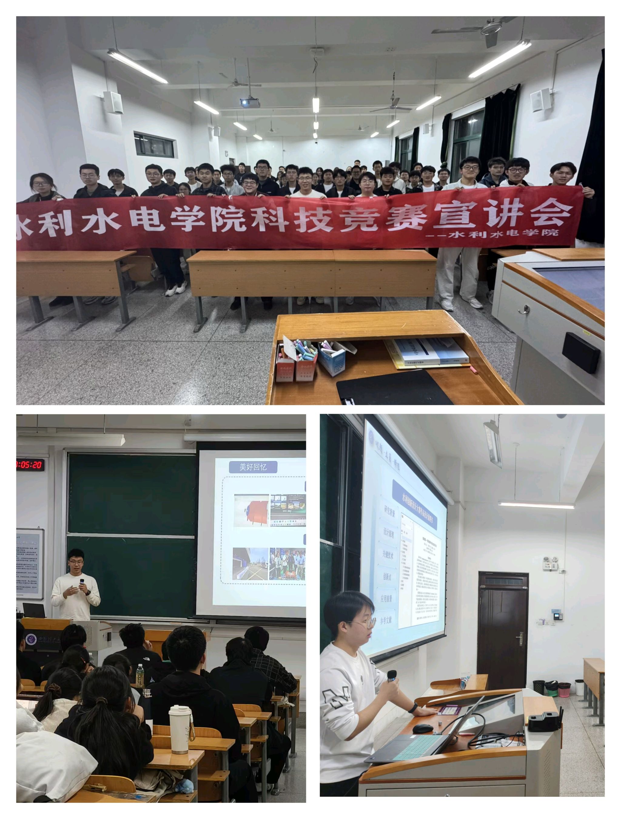 为深入学习贯彻习近平新时代中国特色社会主义思想和党的二十届四中全会关于“加快高水平科技自立自强”的精神内涵,进一步激发青年学生科技创新热情、提升科技创新能力,10月31日,开云官网举办2025年秋季学期科技竞赛宣讲会。活动特邀开云官网在“第九届全国大学生水利创新设计大赛”中荣获国家特等奖的“汇测蛟龙”团队负责人吴浩雨与“智脉清源”团队负责人李宝,为同学们带来全方位的竞赛备战经验分享。