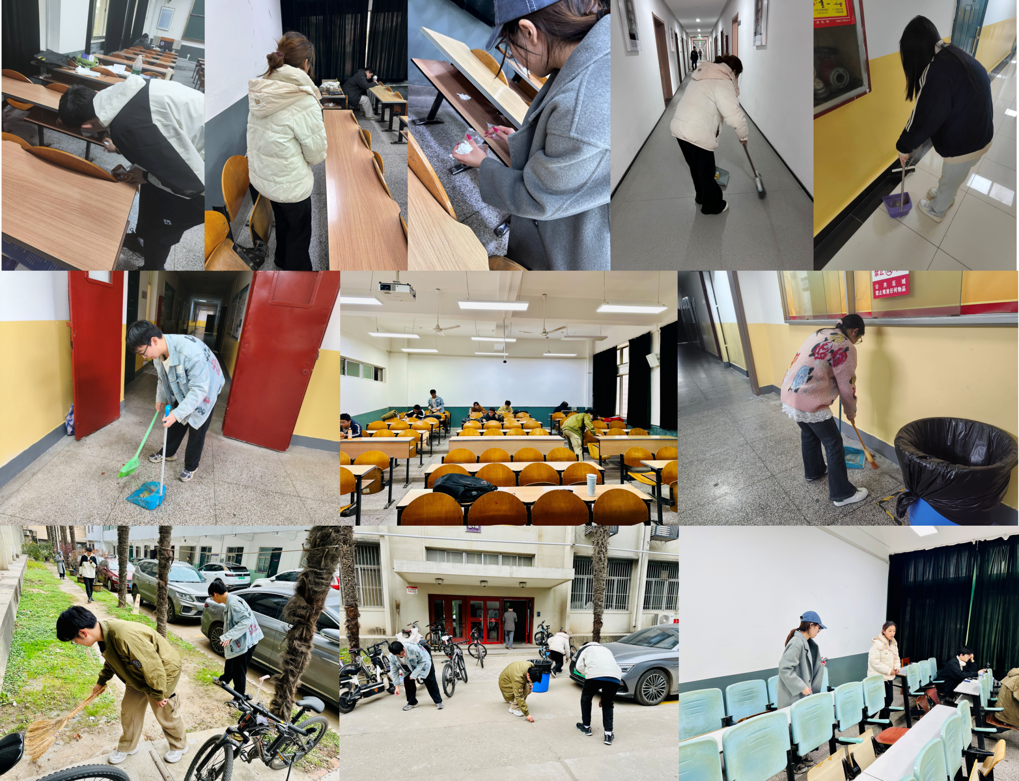 活动中,各班级同学踊跃参与,重点对教四楼、教六楼的教室、走廊、楼梯间等公共区域进行了全面清扫和整理。同学们分工明确、配合默契,发扬不怕脏、不怕累的劳动精神,认真清理卫生死角,规范整理物品摆放,不放过任何一个角落。经过大家的共同努力,整个教学楼区域环境焕然一新,营造出更加干净、整洁、舒适的学习和生活氛围。