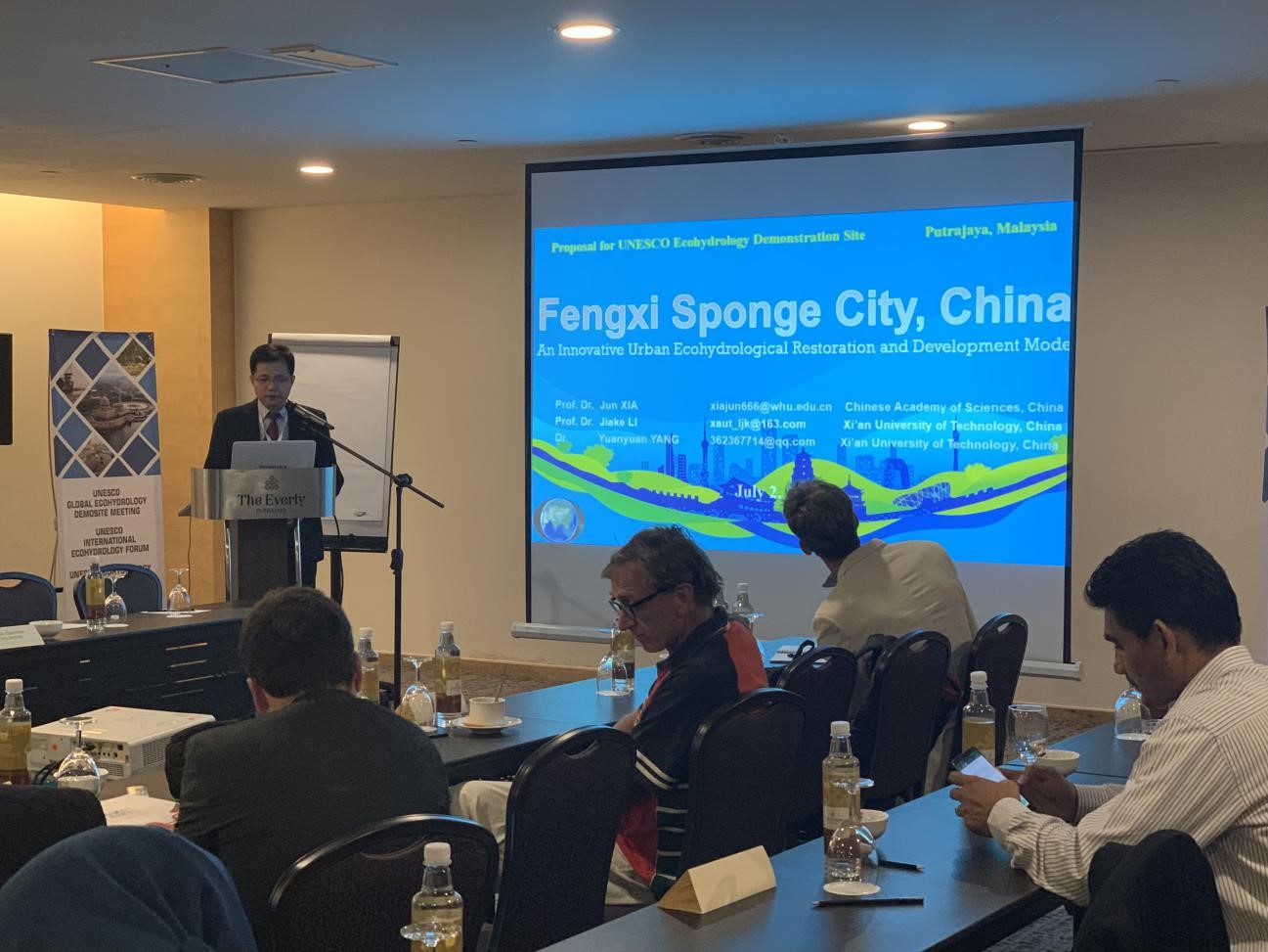 2019年7月1日-4日,受西咸新区沣西新城(2015年国家首批海绵试点城市之一)和中国科学院夏军院士委托,开云官网李家科教授和杨元园博士赴马来西亚联邦政府行政中心布城(Putrajaya),参加了由联合国教科文组织(UNESCO)召集的全球生态水文示范点会议。UNESCO官员和专家Giuseppe Arduino、Hans Dencker Thulstrup、Maciej Zalewski等出席了会议。会议听取了亚太、欧洲、非洲、拉美等15个已有示范点的建设成就展示,审议了中国沣西新城等7个新示范点的立项申请。李家科教授全面介绍了沣西新城生态海绵城市的建设经验和成就,沣西新城海绵城市发展范式获得UNESCO生态水文科学咨询委员会(Ecohydrology Scientific Advisory Committee)普遍认可。7月24日,沣西新城被UNESCO正式授权为两个新的全球生态水文示范点之一。联合国教科文组织生态水文示范点网络于2011年启动,包括本次获批,全球共有25个示范点(中国4个,包括沣西新城),旨在为流域(区域)社会和生态环境问题提供生态水文学解决方案,示范点的所有信息将向联合国教科文组织成员国和公众传播,以提升流域(区域)综合管理水平。