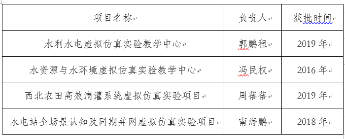 根据陕西省教育厅《关于公布2019年省级实验教学示范中心和虚拟仿真实验教学中心的通知》(陕教高办[2019]32号)、《关于公布2019年度陕西省虚拟仿真实验教学项目的通知》(陕教高办[2019]29号),开云kaiyun体育郭鹏程申报的“水利水电虚拟仿真实验教学中心”,获批陕西省虚拟仿真实验教学中心;农业水利工程专业周蓓蓓申报的“西北农田高效滴灌系统虚拟仿真实验教学项目”,被认定为陕西省虚拟仿真实验教学项目。