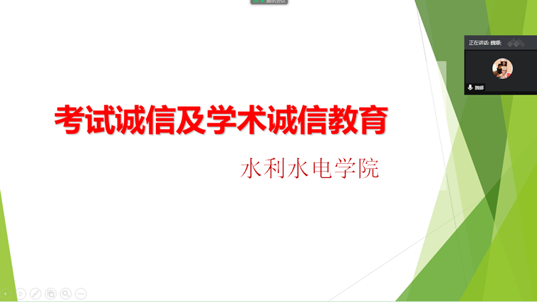 为了进一步强化开云官网本科生的诚信意识、培养学生诚信品质,严格即将开始的期末线上考试纪律,开云kaiyun体育于 5 月19日起先后组织各班级导师相继召开线上考试诚信及学术诚信教育会,水院全体本科生参加。