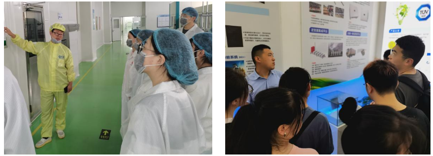 第一站——青海黄河上游水电开发有限责任公司西安太阳能电力分公司。由工作人员带领讲解太阳能电池板的种类,多晶硅、单晶硅、异质结太阳能电池的区别;参观学习太阳能电池板的制造工艺流程,将原材料制成硅片,硅片经过镀膜、蚀刻等一系列步骤才能完成到太阳能电池片的转变,每一步都至关重要。甚至生产过程中的一点灰尘影响,都会导致太阳能电池板效率的降低。