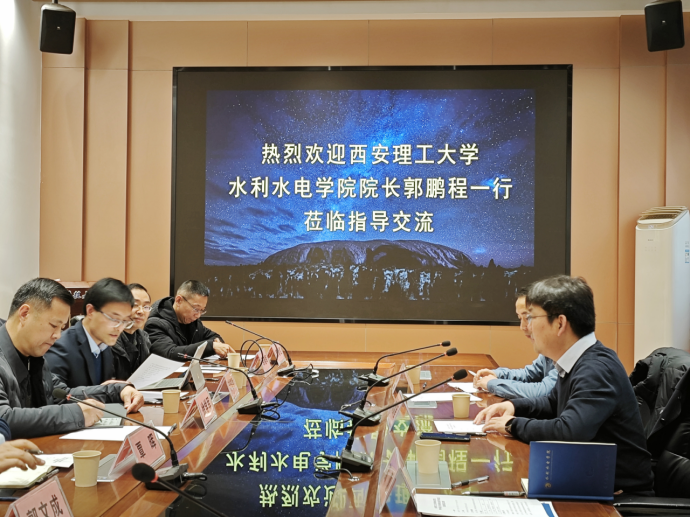 华中科技大学土木与水利工程学院副院长、水利水电科学研究院副院长徐学军教授,水利水电科学研究院常务副院长李超顺教授、副院长覃晖教授、水能系主任袁晓辉教授、水资源系主任陈璐教授、水资源系书记黎育红副教授、水能系书记蒋志强副教授,水能系教师郭文成、徐颜贺副教授与郭鹏程一行在华中科技大学水工楼105会议室进行座谈。会上徐学军与李超顺介绍了华中科技大学土木与水利工程学院和水利水电科学研究院的学院历史、学科建设情况、师资配置等,郭鹏程就本院的办学历史、专业设置、人才引进、科研发展方向进行了介绍。交流中,双方就未来合作方向、各自学科优势特点、人才引进等方面进行了深入的交流探讨,就如何进一步加强合作、提高人才培养质量、推动科研创新等方面交换了意见建议。