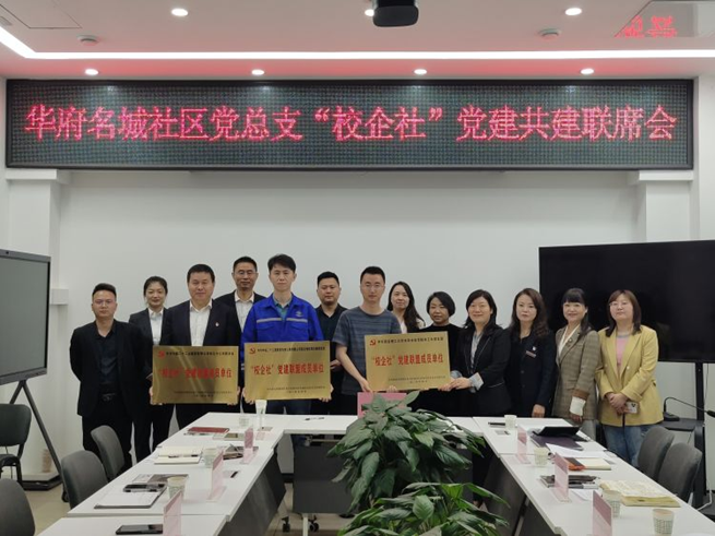 中铁一局建安公司党委、二十二冶集团西北分公司党委、中铁二十五局电务工程西安地铁项目部党支部、雁塔区第三小学党支部、华府名城社区党总支、陕西天浩实业集团党支部、雁塔区第六幼儿园党支部、科瑞物业绿地曲江名城党支部、万科物业服务有限公司第三分公司党支部共十家企事业单位参与此次“校企社”党建联盟共建活动。