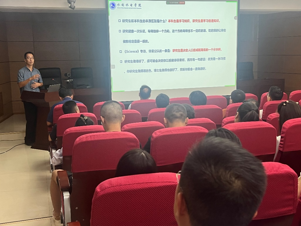 徐国策副院长围绕研究生的培养过程、科创活动、学位授予条件、科研成果认定、实验室安全等五方面进行了深入讲解。他鼓励各位同学要注重培养学术思维和学术能力,学会求知和创新,同时要积极与导师沟通合作,营造良好的科研环境,取得创新成果。