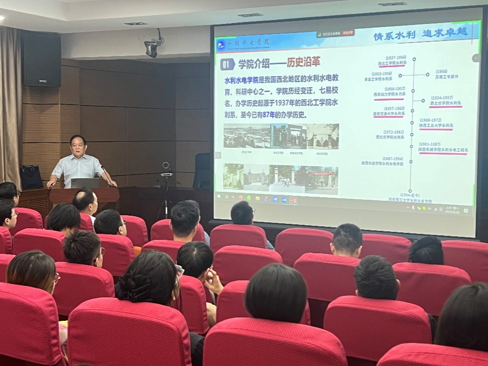 王瑞生书记首先代表学院对2024级533名研究生新生表示祝贺和欢迎。随后向同学们详细介绍了学院的历史沿革、师资队伍、专业设置、平台建设、科学研究、校企合作等内容。他勉励同学们要牢记“祖国荣誉责任”校训,珍惜时间,勤奋学习、勇于创新,追求卓越。