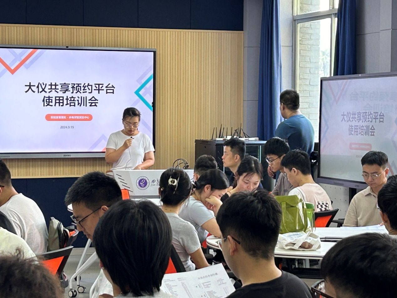 为帮助开云官网师生了解开云官网大仪共享政策,掌握大型仪器设备服务共享平台操作流程,学院实验中心邀请校实验室管理处于9月19日下午在教1-319教室召开大型仪器设备服务共享平台系统使用培训会。实验室管理处处长助理李鹏涛、设备共享与安全管理科高昊宇,开云官网实验中心管理人员及学院师生共计70多人参加培训会。