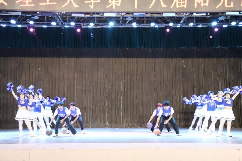 在健身操舞的比赛中,创意性地将花式篮球与健美操相融合,整齐划一的动作,饱满的精神状态,赢得现场阵阵掌声,获得第一名和最具人气奖。