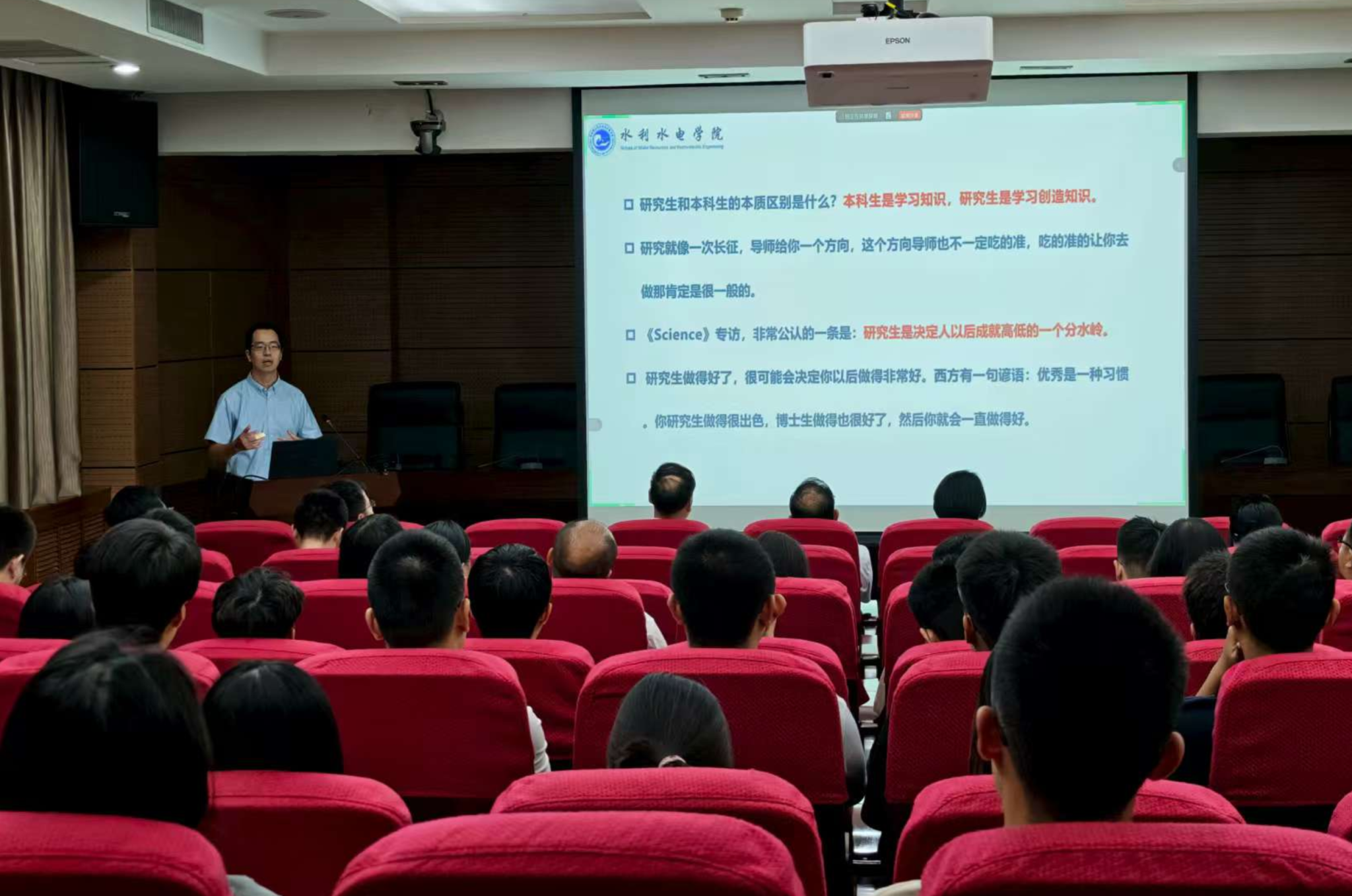 见面会在热烈的掌声中拉开帷幕。学院党委副书记李永阳首先对新生的到来表示诚挚欢迎,随后结合《普通高等学校学生管理规定》《西安理工大学学生管理规定》等文件,要求同学们严格遵守各项管理规定;同时强调,要加强与导师、辅导员的沟通交流,共同营造温馨和谐的学习与生活氛围。此外,他还鼓励新生传承并发扬“情系水利,追求卓越”的学院精神,在未来几年的研究生生涯中潜心科研、勇攀学术高峰。
