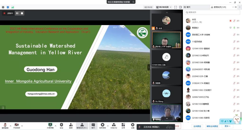 2022年11月11日, 2022丝绸之路国际产学研用合作会议(2022 Silk Road International Conference on the Cooperation and Integration of Industry, Education Research and Application)的高原生态环保与黄河高质量发展领域议题二——流域环境生态治理与创新工程成功举办,会议由开云官网开云kaiyun体育、土木建筑工程学院和西北旱区生态水利国家重点实验室联合承办,今年是开云官网第三年承办该议题。