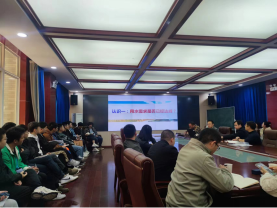 报告中,赵勇副所长对关于国家水网“四个认知和四个构想”八方面进行详细介绍。首先,对用水需求是否已经达峰、如何与国土空间相协调、水资源衰减对水网影响和黄河流域未来缺水识别这四方面进行阐释;其次,提出国家“双T"型水网构、西部调水工程建设、黄河几字弯水网建设和南水北调东中线后续这四方面构想,以期为推动国家水网高质量规划建设提供参考借鉴。汇报结束后,赵勇副所长还与现场的师生进行了积极互动,对现场师生提出的问题作了详细解答,增强了师生对国家水网建设由认知到实施过程的理解。