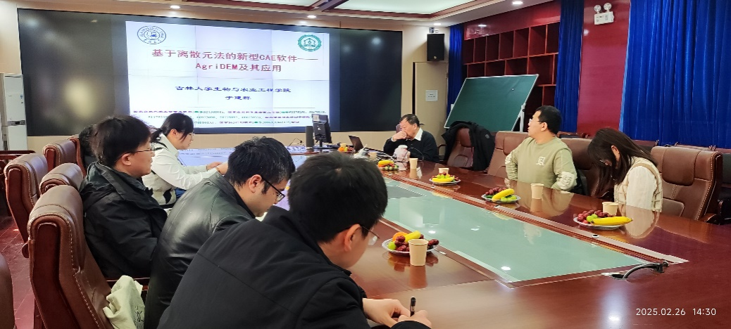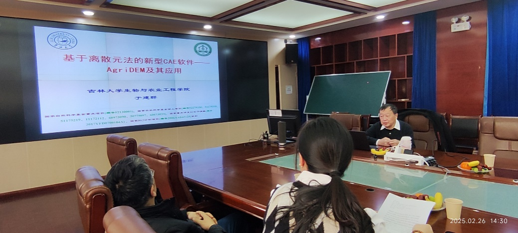 2月26日,吉林大学生物与农业工程学院农业工程学科于建群教授应邀在开云官网金花校区学科1号楼311会议室作了题目为《基于离散元法的新型CAE软件—AgriDEM及其应用》的学术报告。开云kaiyun体育农业工程学科带头人王全九教授及部分师生参加了本次报告。报告由系主任曲植副教授主持。