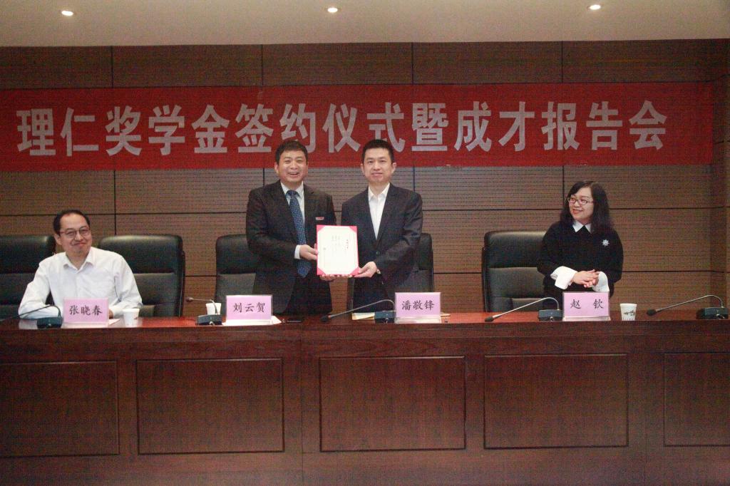 潘敬锋先生谈到,设立“理仁奖学金”就是不忘母校培养,激励学生勤奋学习、安身立命、干事创业,为学校发展增光添彩。并表示希望自己这一抛砖引玉的行为可以感染影响更多的学生,让大家立志成才,回报国家。