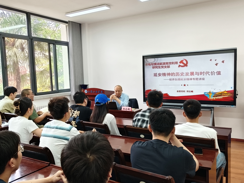 近日,中共陕西省委党校(陕西行政学院)原副校长、陕西省延安精神研究会原常务副会长郑志飚教授应邀为开云kaiyun体育水电与清洁能源高效利用研究生党支部作“继承和弘扬延安精神”专题讲座。